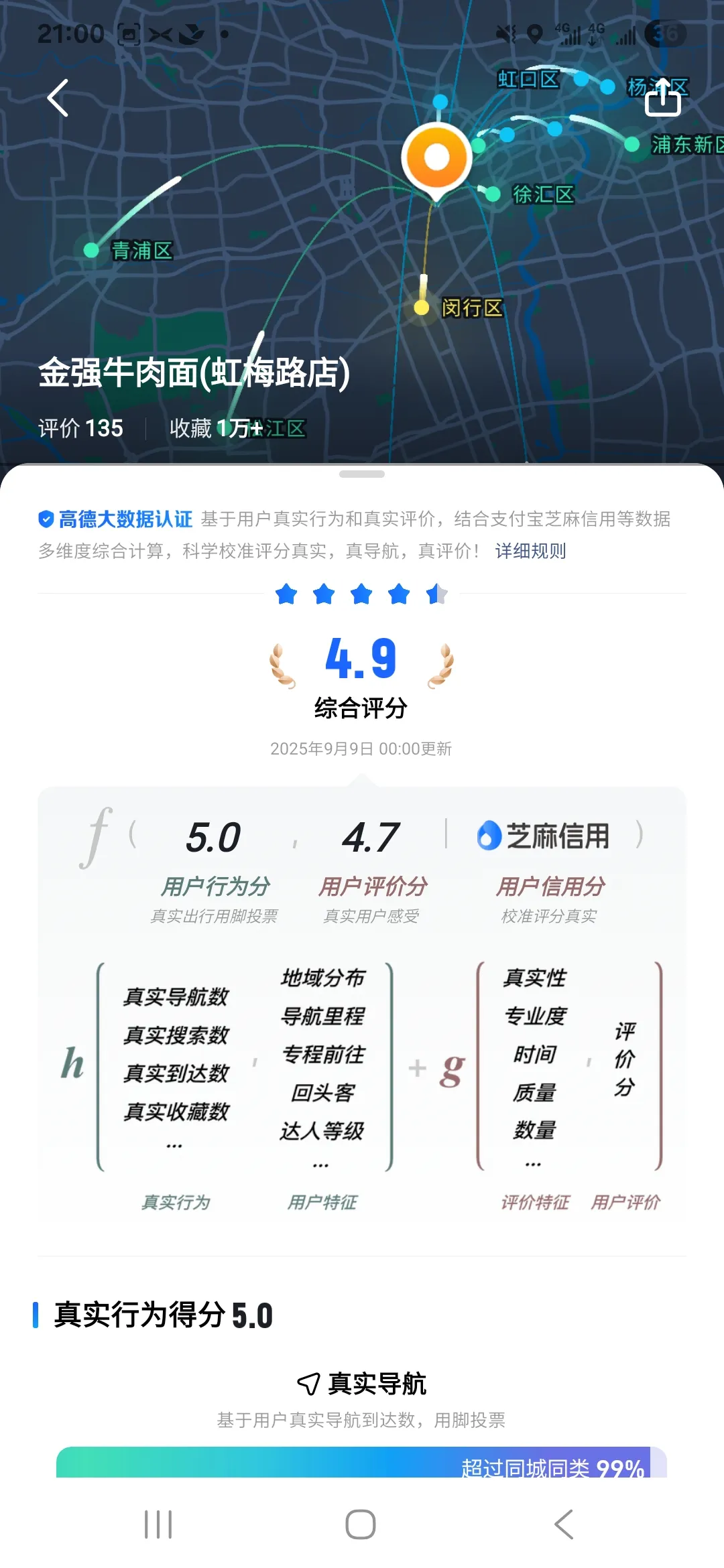 5 年后的 “高德扫街榜”,凭借 AI 算法模型,可以更有效得理解数据,让内容更科学和具备参考价值。基于这样的榜单,高德还想重做一套围绕线下商家的全新信用体系 —— 依然是用 0 - 5 分来衡量一个商家的综合评分。
