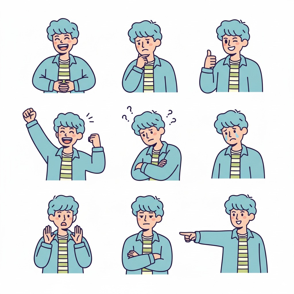- 姿势:[随机半身姿势,表情动作要丰富]